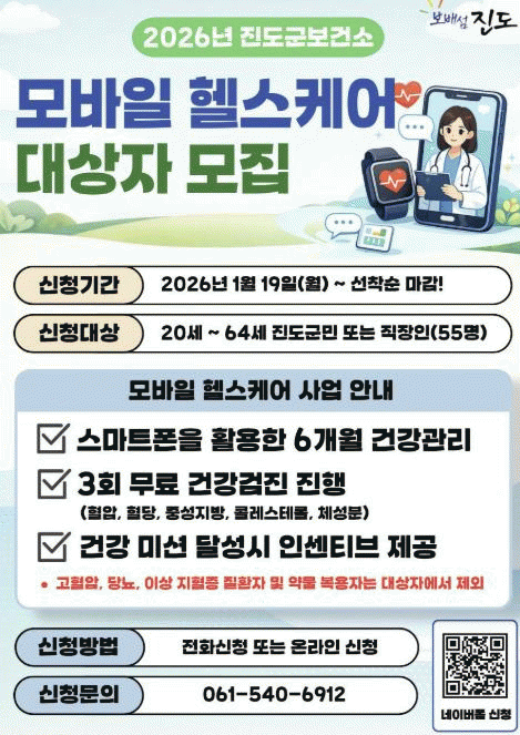 Áøµµ±º ¡®2026³â ¸ð¹ÙÀÏ ÇコÄɾî 1±â¡¯ ´ë»óÀÚ ¸ðÁý