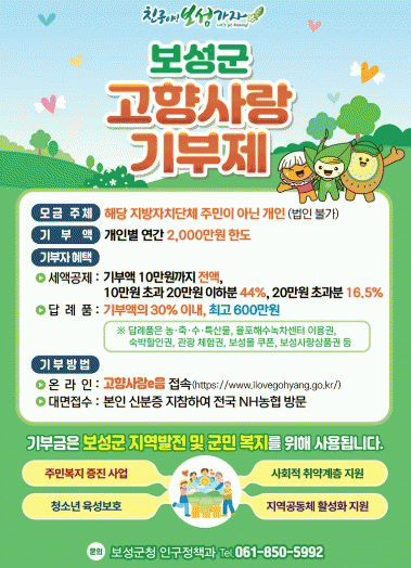 ¡®°íÇâ»ç¶û±âºÎÁ¦¡¯´Â °³ÀÎÀÌ ÁÖ¼ÒÁö ¿Ü ÁöÀÚü¿¡ ¿¬°£ ÃÖ´ë 2,000¸¸ ¿ø±îÁö ±âºÎÇÒ ¼ö ÀÖ´Â Á¦µµ·Î, ±âºÎÀÚ´Â ¼¼¾×°øÁ¦ ÇýÅðú ÇÔ²² Áö¿ª Ư»ê¹° µî ´ä·ÊǰÀ» ¹ÞÀ» ¼ö ÀÖ´Ù. ±âºÎ±ÝÀº Áö¿ªÀÇ º¹Áö ÁõÁø°ú ÁֹΠ»îÀÇ Áú Çâ»óÀ» À§ÇÑ ´Ù¾çÇÑ »ç¾÷¿¡ Ȱ¿ëµÈ´Ù.