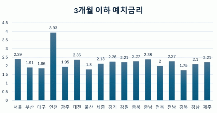 Áö¹æÁ¤ºÎ ±Ý°í ÀÌÀÚÀ²Àº ¿¹Ä¡ ±â°£¿¡ µû¶ó Â÷µî Àû¿ëµÈ´Ù. Áö¹æÁ¤ºÎ´Â ¿¹»êÀÇ Àû±â ÁýÇàÀ» À§ÇØ 6°³¿ù ÀÌÇÏ ´Ü±â ¿¹Ä¡ ºñÁßÀÌ ³ôÀº ¸¸Å­, Àü³²µµÀÇ ´Ü±â ¿¹Ä¡ ±Ý¸® Àü±¹ »óÀ§±Ç ¼º°ú´Â Ä¡¹ÐÇÑ ±Ý¸® Çù»óÀÇ °á°ú·Î ºÐ¼®µÈ´Ù.