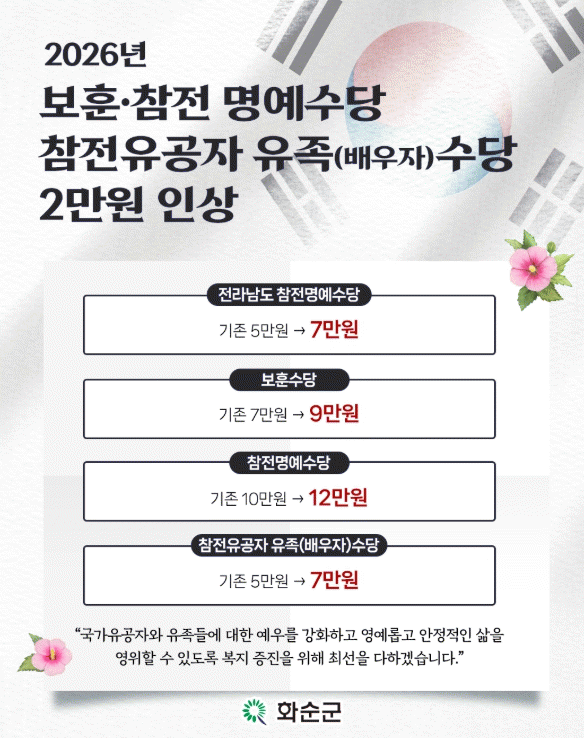 ¶ÇÇÑ ÂüÀüÀ¯°øÀÚÀ¯Á·(¹è¿ìÀÚ)¼ö´ç°ú Àü¶ó³²µµ ÂüÀü¸í¿¹¼ö´ç ¿ª½Ã °¢°¢ ¿ù 5¸¸ ¿ø¿¡¼ 7¸¸ ¿øÀ¸·Î »óÇâ Áö±ÞµÈ´Ù.
