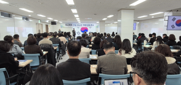 Àü³²±³À°Ã»Àº 4~5ÀÏ ¼øÃµ¸¸»ýŹ®È±³À°¿ø¿¡¼ Çб³Æø·Â »ç¾È Á¶»ç¡¤Ã³¸®ÀÇ Àü¹®¼ºÀ» ³ôÀ̱â À§ÇÑ ¡®Çб³Æø·Â Àü´ã Á¶»ç°ü ¿ª·®°È ¿¬¼ö¡¯¸¦ ¿î¿µÇÑ´Ù.