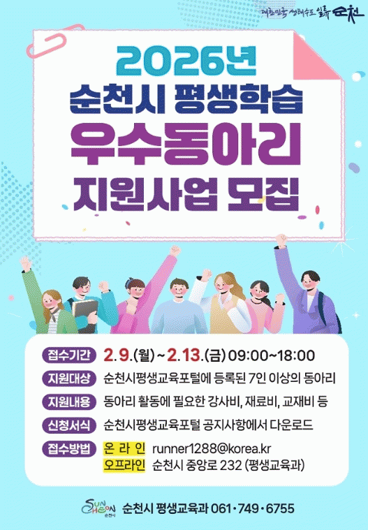 ½Åû ¹æ¹ýÀº ¼øÃµ½Ã Æò»ý±³À°°ú¿¡ ¹æ¹® Á¢¼öÇϰųª ´ã´çÀÚ ¸ÞÀÏ·Î Á¦ÃâÇÏ¸é µÇ¸ç, ÀÚ¼¼ÇÑ ³»¿ëÀº ¼øÃµ½Ãû ´©¸®ÁýÀ̳ª ¼øÃµ½Ã Æò»ý±³À° Æ÷Åп¡¼ È®ÀÎÇÒ ¼ö ÀÖ´Ù.