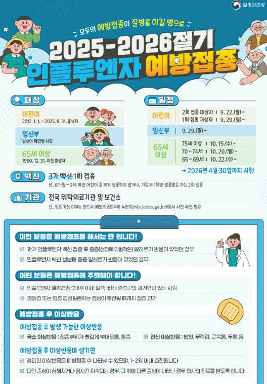 ÀÎÇ÷翣ÀÚ ¿¹¹æÁ¢Á¾ ´ë»óÀº ¡ã»ýÈÄ 6°³¿ù~13¼¼ ¾î¸°ÀÌ ¡ã65¼¼ ÀÌ»ó ¾î¸£½Å ¡ãÀӽźÎÀ̸ç, Äڷγª19 ¿¹¹æÁ¢Á¾ ´ë»óÀº ¡ã65¼¼ ÀÌ»ó ¾î¸£½Å ¡ã¸é¿ªÀúÇÏÀÚ ¡ã°¨¿°Ãë¾à½Ã¼³ ÀÔ¿ø¡¤ÀÔ¼ÒÀÚ·Î, ÇØ´ç ´ë»óÀÚ´Â ÁßÁõÈ À§ÇèÀÌ ³ôÀº ¸¸Å Àû±ØÀûÀÎ Á¢Á¾ Âü¿©°¡ ÇÊ¿äÇÏ´Ù.