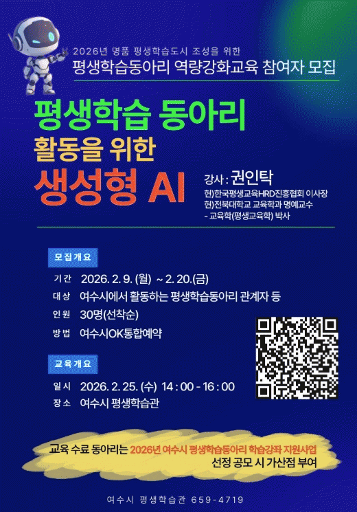 ƯÈ÷ À̹ø ±³À°À» ¼ö·áÇÑ µ¿¾Æ¸®´Â ¡®2026³â ¿©¼ö½Ã Æò»ýÇнÀµ¿¾Æ¸® ÇнÀ°Á Áö¿ø»ç¾÷¡¯ °ø¸ð ½Åû ½Ã °¡»êÁ¡À» ¹ÞÀ» ¼ö ÀÖ¾î µ¿¾Æ¸® °ü°èÀÚµéÀÇ °ü½ÉÀÌ ³ôÀ» °ÍÀ¸·Î ±â´ëµÈ´Ù.