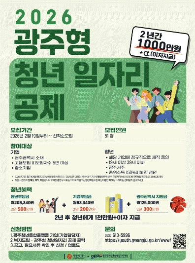 ¡®±¤ÁÖÇü û³âÀÏÀÚ¸® °øÁ¦ »ç¾÷¡¯Àº û³âÀÌ 2³â°£ 500¸¸¿øÀ» Àû¸³ÇÏ¸é ±â¾÷ 200¸¸¿ø, ±¤Áֽð¡ 300¸¸¿øÀ» °¢°¢ Àû¸³ÇØ ¸¸±â°øÁ¦±Ý 1000¸¸¿øÀ» Áö¿øÇÏ´Â Á¦µµ´Ù. û³âÀÇ ¾ÈÁ¤Àû Áö¿ªÁ¤ÂøÀ» µ½´Â µ¿½Ã¿¡, Áö¿ª Áß¼Ò±â¾÷ÀÇ Àη Ȯº¸¿Í Àå±â±Ù¼ÓÀ» À¯µµÇϱâ À§ÇØ Áö³ 2024³â µµÀÔÇß´Ù.