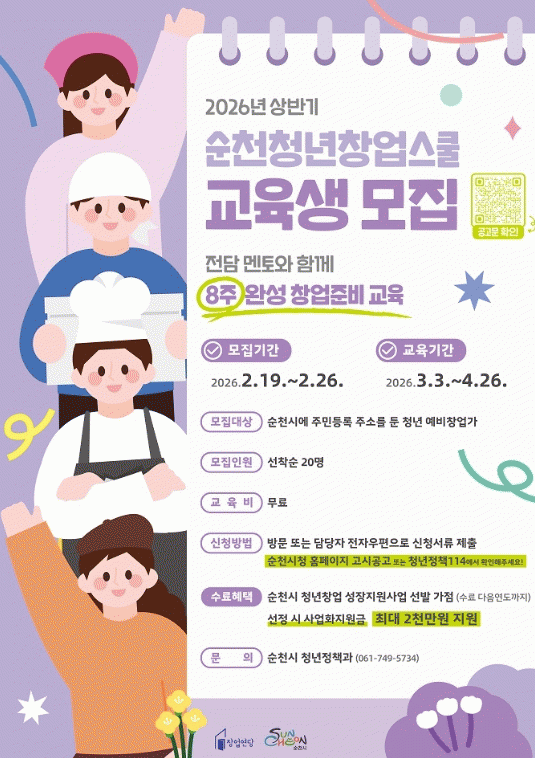 ¼øÃµÃ»³ââ¾÷½ºÄðÀº Àü´ã ¸àÅä¿Í ÇÔ²²ÇÏ´Â 8ÁÖ ¿Ï¼º â¾÷Áغñ ±³À°°úÁ¤À¸·Î â¾÷¿¬´ç(¼øÃµ½Ã ¿ªÀü±¤Àå3±æ 54, »ýźñÁî´Ï½º¼¾ÅÍ)¿¡¼ ÁøÇàµÈ´Ù.