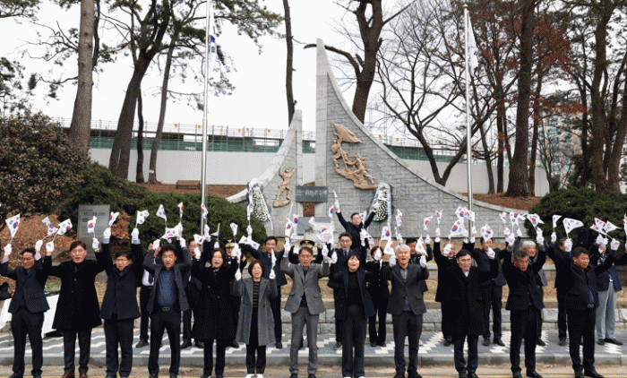 1ÀÏ ÀÒ¾î¹ö¸° Á¶±¹À» µÇã±â À§ÇØ ¿ÜÃÆ´ø 3.1 µ¶¸³¸¸¼¼¿îµ¿ÀÌ 107ÁÖ³âÀ» ¸ÂÀÌÇÑ °¡¿îµ¥ 1976³â °Ç¸³µÈ °Áø±º °ÁøÀ¾ ¼¼º¸® 3.1¿îµ¿ ±â³äºñ ¾Õ¿¡¼ ±èÁØÃ¶ °Áø ºÎ±º¼ö¸¦ ºñ·ÔÇØ °¢±Þ ±â°ü´ÜüÀå µî Âü¼®ÀÚµéÀÌ ±â³ä½ÄÀ» °®°í ´ëÇѵ¶¸³ ¸¸¼¼¸¦ ¿ÜÄ¡°í ÀÖ´Ù.