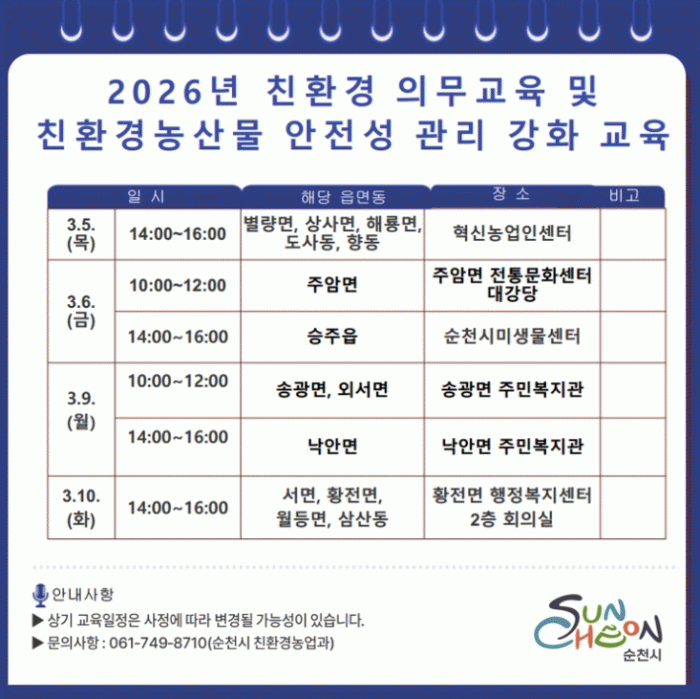 ½Ã´Â À̹ø Àǹ«±³À°À» ÅëÇØ ģȯ°æ³ó¾÷ ±â¹ÝÀ» ´õ¿í °ø°íÈ÷ Çϰí, ¾ÈÀüÇÑ ³ó»ê¹° »ý»ê ü°è¸¦ °ÈÇÒ ¹æÄ§ÀÌ´Ù.