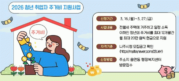 ³ªÁֽô ¼º½ÇÈ÷ ÀÏÇϴ û³â Ãë¾÷ÀÚÀÇ ÁÖ°Å ¾ÈÁ¤À» µ½±â À§ÇØ ¼±Á¤µÈ û³â¿¡°Ô »ý¾Ö 1ȸ¿¡ ÇÑÇØ ÃÖ´ë 12°³¿ù µ¿¾È ¿ù 20¸¸ ¿ø(ÃÖ´ë 240¸¸ ¿ø)ÀÇ Áְźñ¸¦ Áö¿øÇÑ´Ù°í 16ÀÏ ¹àÇû´Ù.