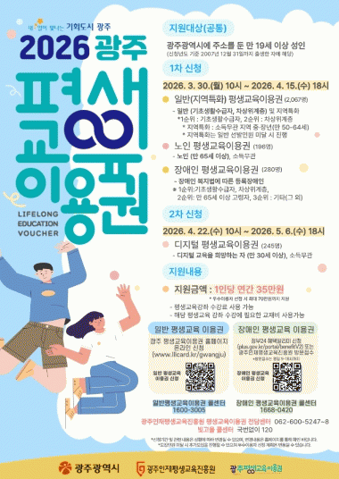 ±¤ÁÖ±¤¿ª½Ã´Â Àú¼ÒµæÃþ°ú Àå¾ÖÀÎ, ³ëÀÎ, µðÁöÅÐ ¼Ò¿Ü°èÃþÀÇ Æò»ýÇнÀ ±âȸ¸¦ È®´ëÇϱâ À§ÇØ ¡®2026³â Æò»ý±³À°ÀÌ¿ë±Ç Áö¿ø»ç¾÷¡¯À» ½ÃÇàÇÑ´Ù.
