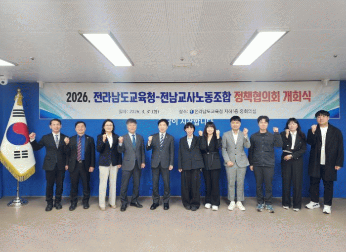 Àü¶ó³²µµ±³À°Ã»°ú Àü³²±³»ç³ëµ¿Á¶ÇÕ °ü°èÀÚµéÀÌ 31ÀÏ Àü³²±³À°Ã» ÁßȸÀǽǿ¡¼­ ¡®2026³â Á¤Ã¥ÇùÀÇȸ °³È¸½Ä¡¯À» °¡Áø µÚ ±â³ä»çÁø ÃÔ¿µÀ» Çϰí ÀÖ´Ù.