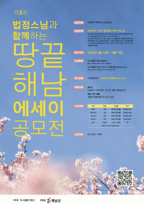 ÇØ³²±º°ú µµ¼­ÃâÆÇ ºÏ»êÀº ¹ýÁ¤½º´Ô ¹«¼ÒÀ¯ Á¤½Å°ú »îÀÇ Ã¶ÇÐÀ» Çö´ëÀÎÀÇ ÀÏ»ó¼Ó¿¡¼­ ÀçÁ¶¸íÇϴ¡®¶¥³¡Çس² ¿¡¼¼ÀÌ °ø¸ðÀü¡¯À» °³ÃÖÇÑ´Ù. ¿ÃÇØ·Î 3ȸ°¸¦ ¸Â´Â À̹ø °ø¸ðÀüÀº ¹ýÁ¤ ½º´ÔÀÇ ¸»¾¸À» ÅëÇØ »îÀÇ º»ÁúÀû °¡Ä¡¿Í ºñ¿òÀ» ÅëÇÑ ¼ºÂûÀ» ³ª´©±â À§ÇØ ¸¶·ÃµÆ´Ù.