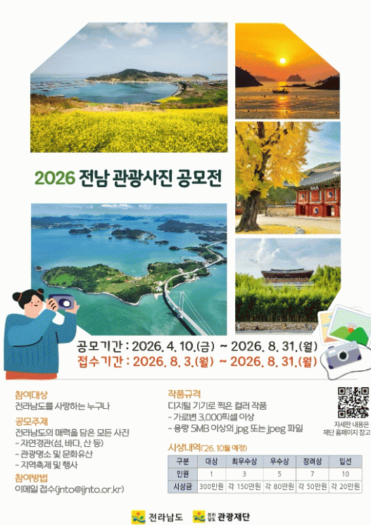 ¿À¹Ì°æ Àü³²µµ °ü±¤°úÀåÀº ¡°À̹ø °ø¸ðÀüÀº Àü³² °ü±¤ÀÇ ¸Å·ÂÀ» »ý»ýÇÏ°Ô ´ã¾Æ³»°í ³Î¸® ¾Ë¸®´Â °è±â°¡ µÉ °Í¡±À̶ó¸ç ¡°»çÁøÀ» ÅëÇØ Àü³²ÀÇ ¸ÚÁø ¼ø°£À» ±â·ÏÇØ ³Î¸® ¾Ë¸®µµ·Ï ¸¹Àº Âü¿© ¹Ù¶õ´Ù¡±°í ±â´ëÇß´Ù.