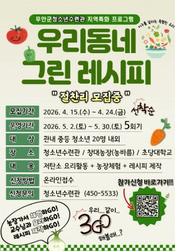¹«¾È±ºÃ»¼Ò³â¼ö·Ã°üÀº ¡®¿ì¸®µ¿³× ±×¸°·¹½ÃÇÇ¡¯ ÇÁ·Î±×·¥ Âü°¡ÀÚ¸¦ ¿À´Â 4¿ù 24ÀϱîÁö ¸ðÁýÇÑ´Ù°í ¹àÇû´Ù.