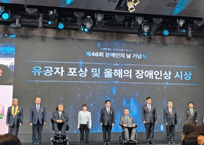 Àü¶ó³²µµ´Â Á¦46ȸ Àå¾ÖÀÎÀÇ ³¯(4¿ù 20ÀÏ)À» ¸Â¾Æ ½Ç½ÃµÈ Á¤ºÎÆ÷»ó¿¡¼­ ÈÆÀå 1¸í, ±¹¹ÎÆ÷Àå 2¸í, º¸°Çº¹ÁöºÎ Àå°ü ǥâ 4¸í µî ÃÑ 7¸íÀÌ ¼±Á¤µÅ ¿ª´ë ÃÖ´Ù ¼ö»ó ¼º°ú¸¦ °Åµ×´Ù°í ¹àÇû´Ù.