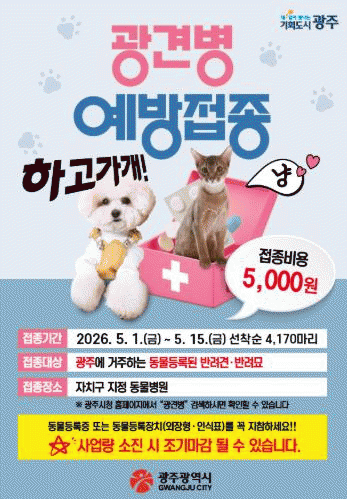±¤Áֽô ¸Å³â º½°ú °¡À» µÎ Â÷·Ê ±¤°ßº´ ¿¹¹æÁ¢Á¾ »ç¾÷À» ½Ç½ÃÇϰí ÀÖ´Ù.